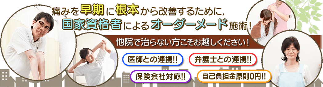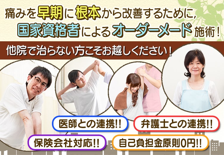 後遺症は日によって痛みの程度が変わってくる場合もあり、その日のお身体の状態に合わせて施術を行うことが大切となります。